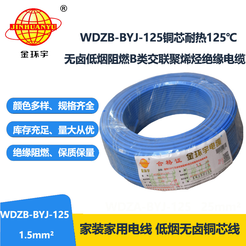 WDZB-BYJ-125℃全稱為耐熱125℃無鹵低煙阻燃B類交聯(lián)聚烯烴絕緣電纜;符合解釋說明:WDZ表示低煙無鹵阻燃;B代表B類阻燃;B代表布電線;YJ表示交聯(lián)聚乙烯;
