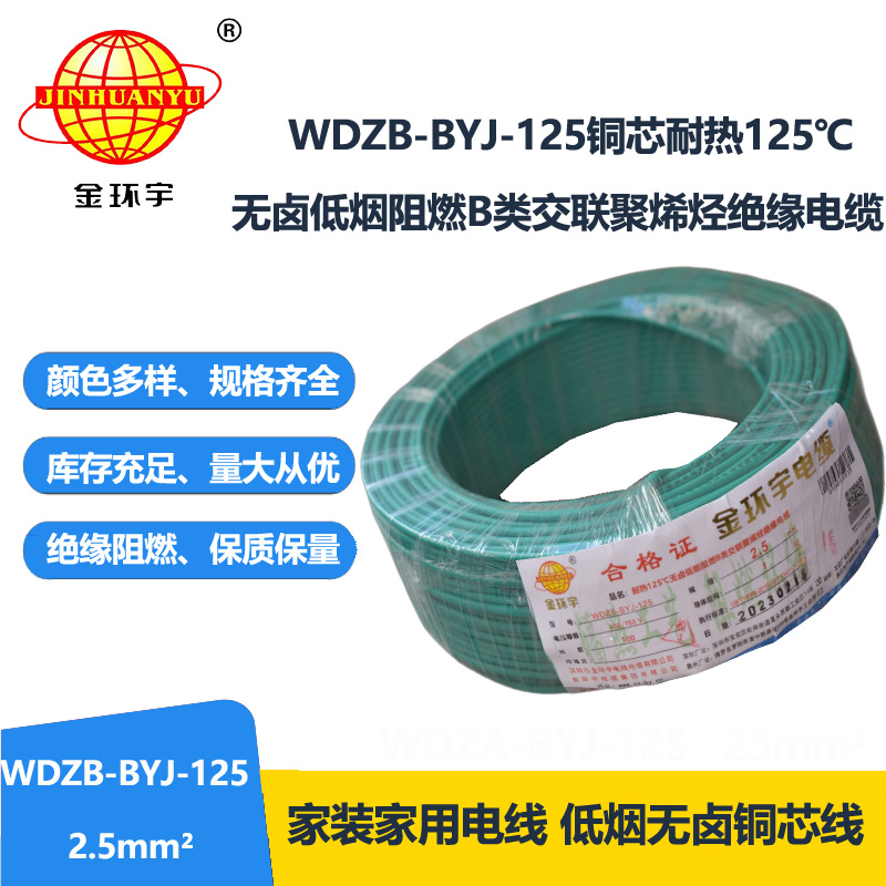 WDZB-BYJ-125℃全稱為耐熱125℃無(wú)鹵低煙阻燃B類(lèi)交聯(lián)聚烯烴絕緣電纜;符合解釋說(shuō)明:WDZ表示低煙無(wú)鹵阻燃;B代表B類(lèi)阻燃;B代表布電線;YJ表示交聯(lián)聚乙烯;