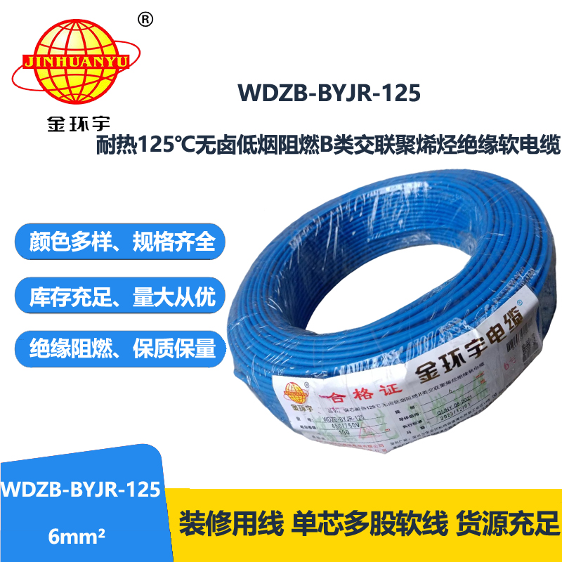 絕緣材質(zhì):耐熱125℃銅芯無鹵低煙阻燃B類交聯(lián)聚烯烴絕緣