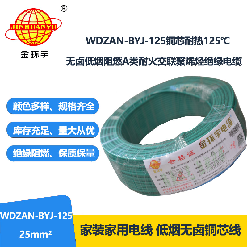 WDZAN-BYJ-125℃銅芯耐熱125℃低煙無鹵A級阻燃耐火(W-無鹵;D--低煙;Z--阻燃;A-級別;N-耐火),BYJ---銅芯導體交聯(lián)聚乙烯絕緣固定敷設用電線