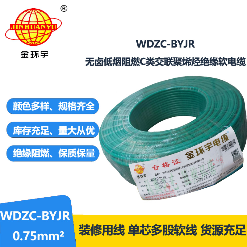 WDZC-BYJR指低煙無鹵阻燃聚烯烴護套,交聯(lián)聚乙烯絕緣軟電線。WDZC分別是無鹵、低煙、阻燃、聚烯烴,B指電線,YJ是交聯(lián)聚乙烯絕緣,R是軟。