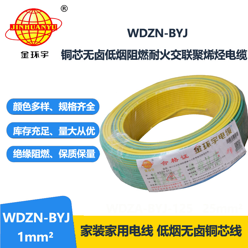 金環(huán)宇電線WDZN-BYJ 1平方低煙無鹵阻燃耐火電線 家裝單股硬線