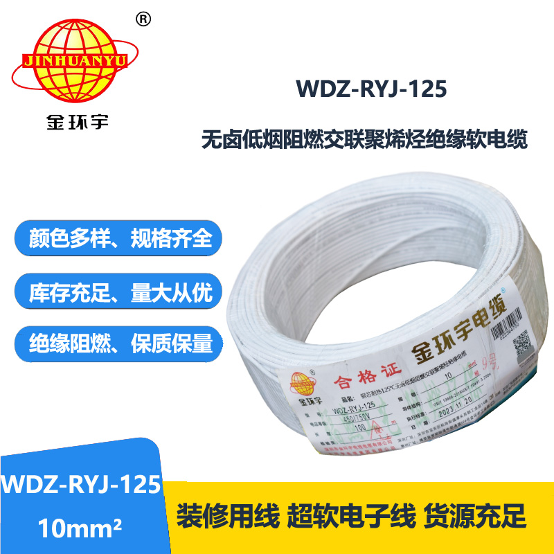 金環(huán)宇電線電纜 耐熱低煙無鹵阻燃電線WDZ-RYJ-125 -10平方單芯多股電子線
