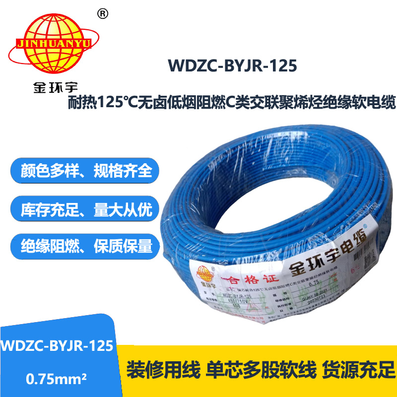 金環(huán)宇電線電纜 WDZC-BYJR-125耐熱c類低煙無鹵阻燃電線0.75平方電線