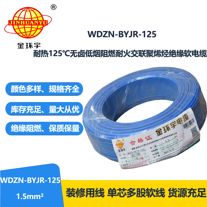 WDZN-BYJR-125是一種交聯(lián)聚乙烯新型裝修的布電線。WDZN-BYJR-125布電線的特點就是低煙量、無鹵素、阻燃、耐火。每個字母代表的意思:W代表無鹵;D代表低煙;Z代表阻燃;N代表耐火;125代表溫度可達(dá)到125℃,YJ代表交聯(lián)聚乙烯絕緣;R代表軟。其導(dǎo)體主要是銅線,有薄的絕緣層和良好的電氣機械性能,以及耐熱、防潮、耐溶劑等性能,選用不同的絕緣材料可獲得不同的特性。