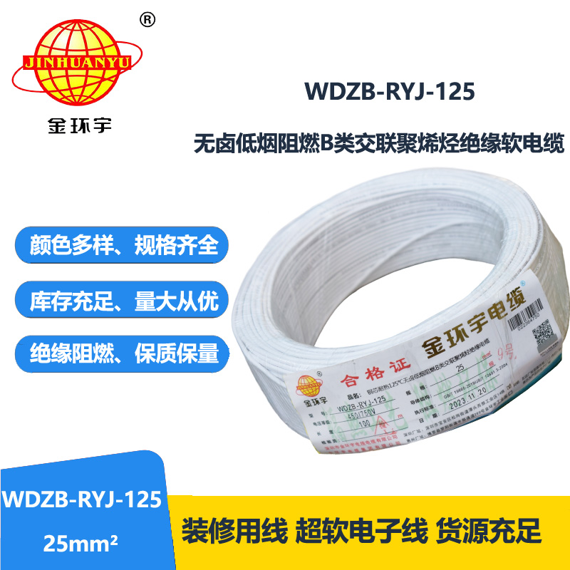 金環(huán)宇電線(xiàn)電纜 銅芯電線(xiàn)WDZB-RYJ-125電線(xiàn)25平方 耐熱低煙無(wú)鹵阻燃電線(xiàn)