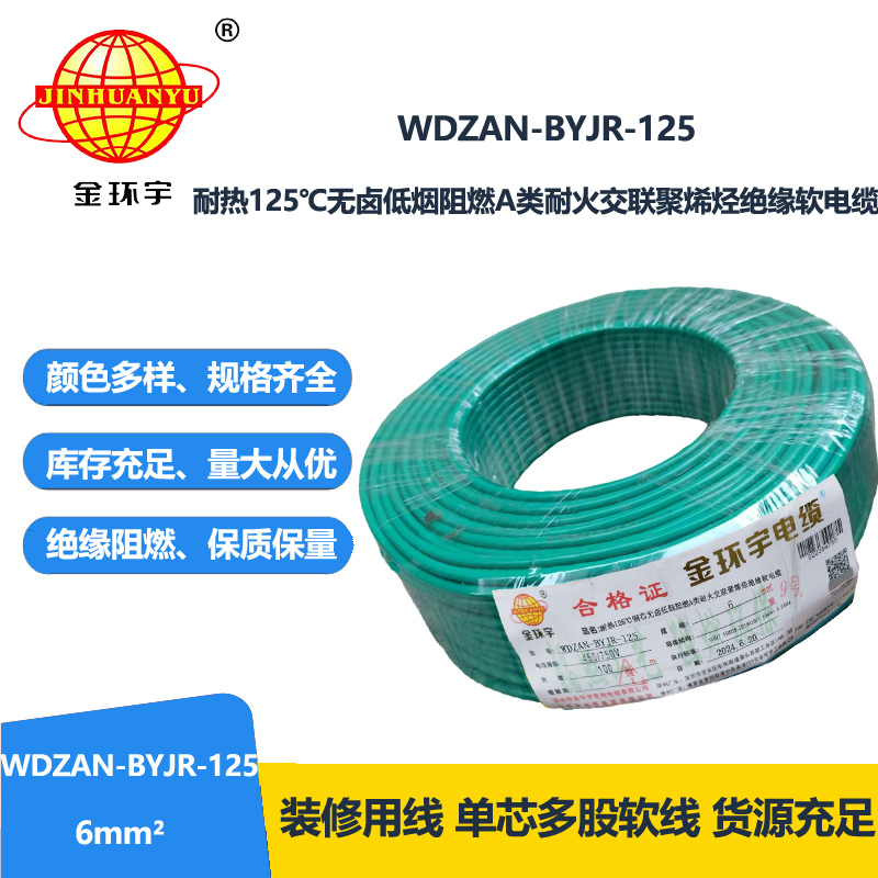 金環(huán)宇電線電纜 WDZAN-BYJR-125耐熱低煙無鹵阻燃耐火家裝電線 6平方軟電線