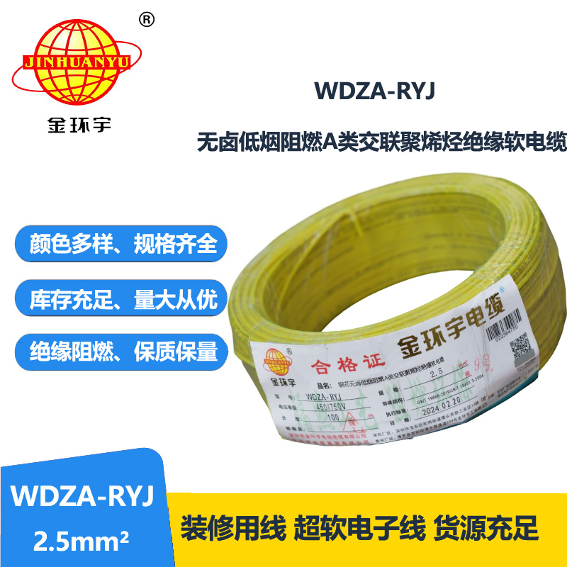 WDZA-RYJ低煙無鹵阻燃電線具有高阻燃、耐高溫、低煙低毒的良好性能,適用于額定電壓450/750V及以下耐熱105℃或125℃固定布線和電力、電子設(shè)備內(nèi)部連接線,如家庭裝修、消防設(shè)備、緊急電源插座等供電。
