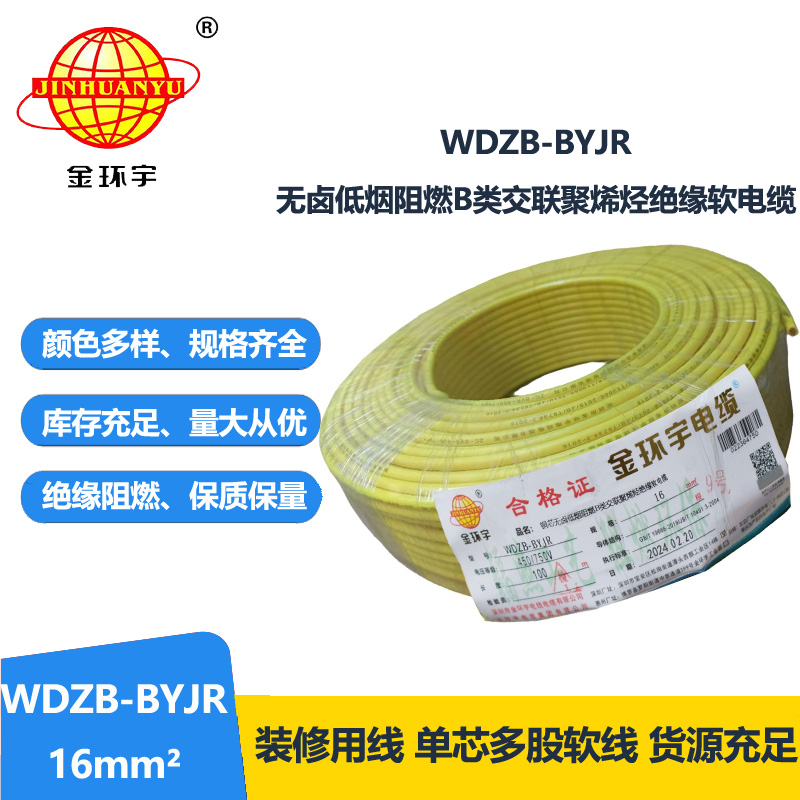 金環(huán)宇 環(huán)保電纜WDZB-BYJR 16平方 低煙無(wú)鹵阻燃電線 國(guó)標(biāo)