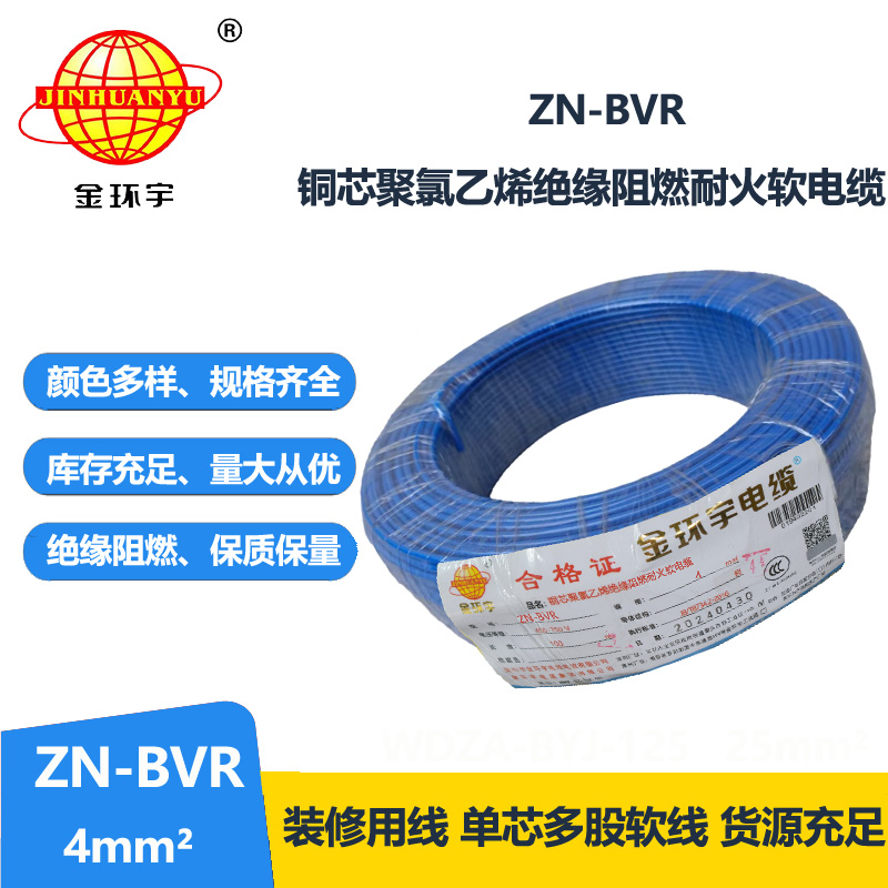 ZN-BVR 4平方就是導(dǎo)線截面為4平方毫米的一種銅芯阻燃聚氯乙烯絕緣軟電線,適用于交流額定電壓450/750V及以下的動(dòng)力裝置的固定敷設(shè)。