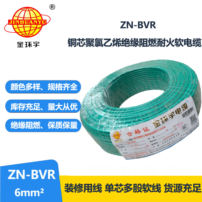 ZN-BVR 6平方就是導(dǎo)線截面為6平方毫米的一種銅芯阻燃聚氯乙烯絕緣軟電線,適用于交流額定電壓450/750V及以下的動力裝置的固定敷設(shè)。