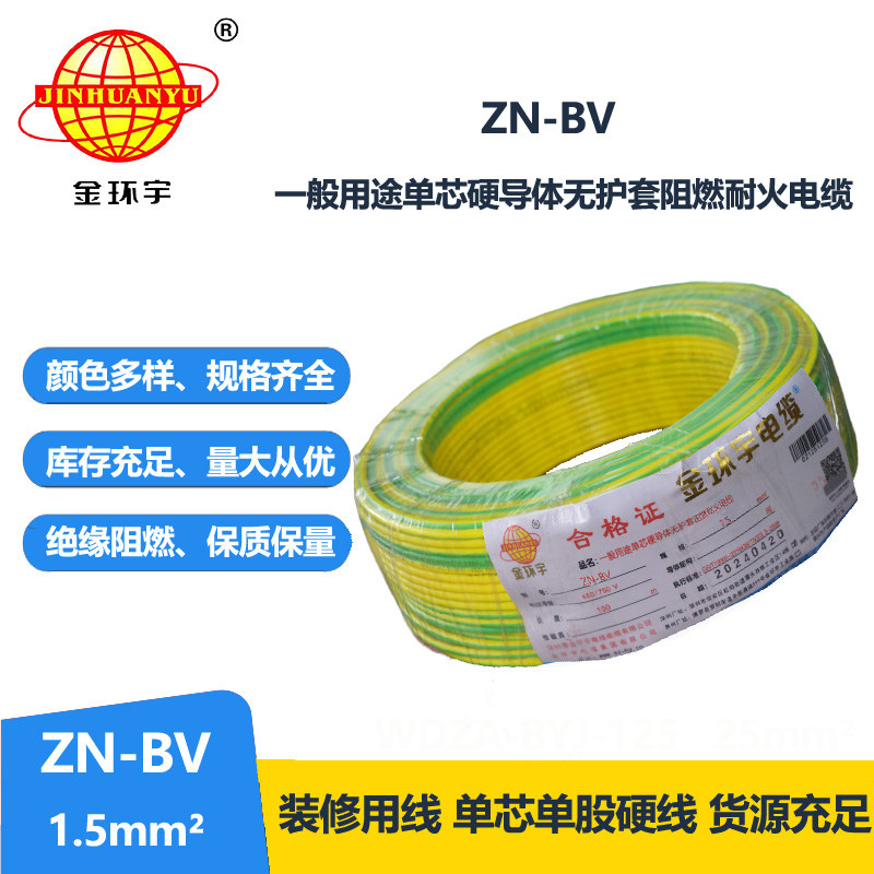 ZN-BV1.5平方就是導線截面為1.5平方毫米的銅芯聚氯乙烯絕緣阻燃電線,由一根銅線組成,多用于450/750V及以下動力裝置、日用電器、儀表用線及固定的埋設當中。
