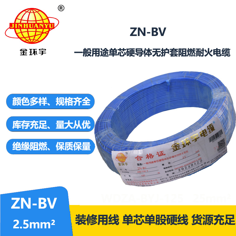 ZN-BV2.5平方就是導(dǎo)線截面為2.5平方毫米的銅芯聚氯乙烯絕緣阻燃電線,由一根銅線組成,多用于450/750V及以下動(dòng)力裝置、日用電器、儀表用線及固定的埋設(shè)當(dāng)中。