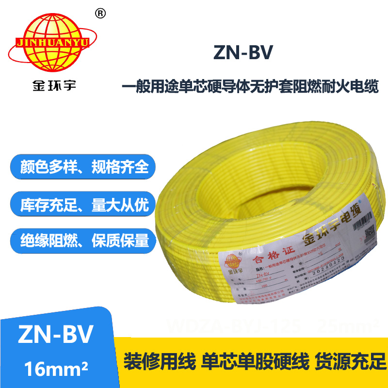 ZN-BV16平方就是導(dǎo)線截面為16平方毫米的銅芯聚氯乙烯絕緣阻燃電線,由一根銅線組成,多用于450/750V及以下動(dòng)力裝置、日用電器、儀表用線及固定的埋設(shè)當(dāng)中。