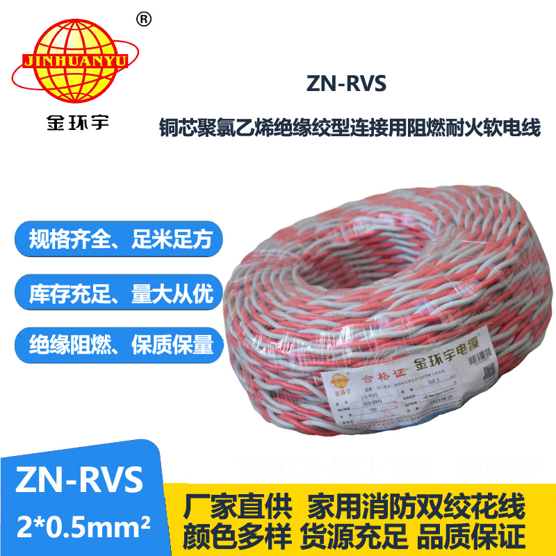 ZN-RVS電纜全稱銅芯阻燃耐火聚氯乙烯絕緣絞型連接用軟電線、對絞多股軟線,簡稱雙絞線。ZN-RVS 2*0.5是由2根0.5平方的電線相互對絞制作而成,帶阻燃特性。