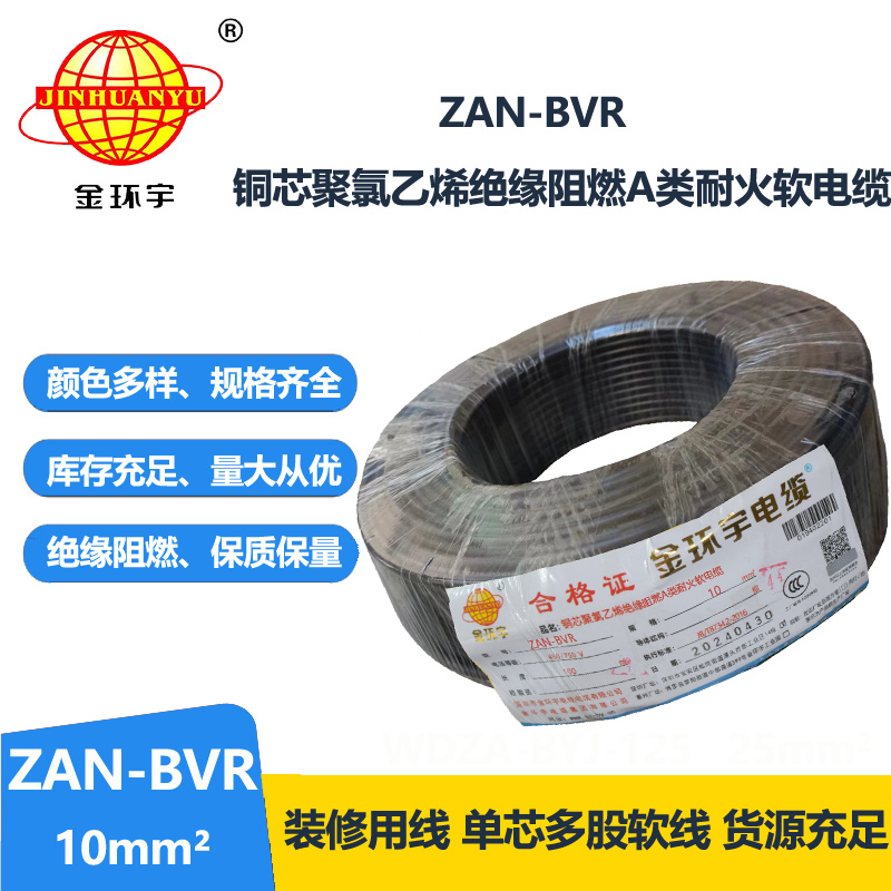 金環(huán)宇電線 a類阻燃電線ZAN-BVR 10平方耐火電線 軟電線