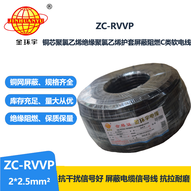 金環(huán)宇電線電纜 ZC-RVVP2X2.5平方 阻燃銅屏蔽控制音頻信號(hào)線
