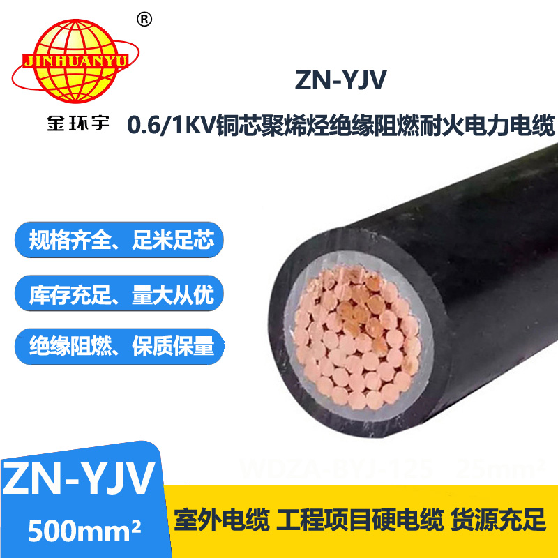 金環(huán)宇電纜 國(guó)標(biāo)ZN-YJV 500平方阻燃耐火電力電纜