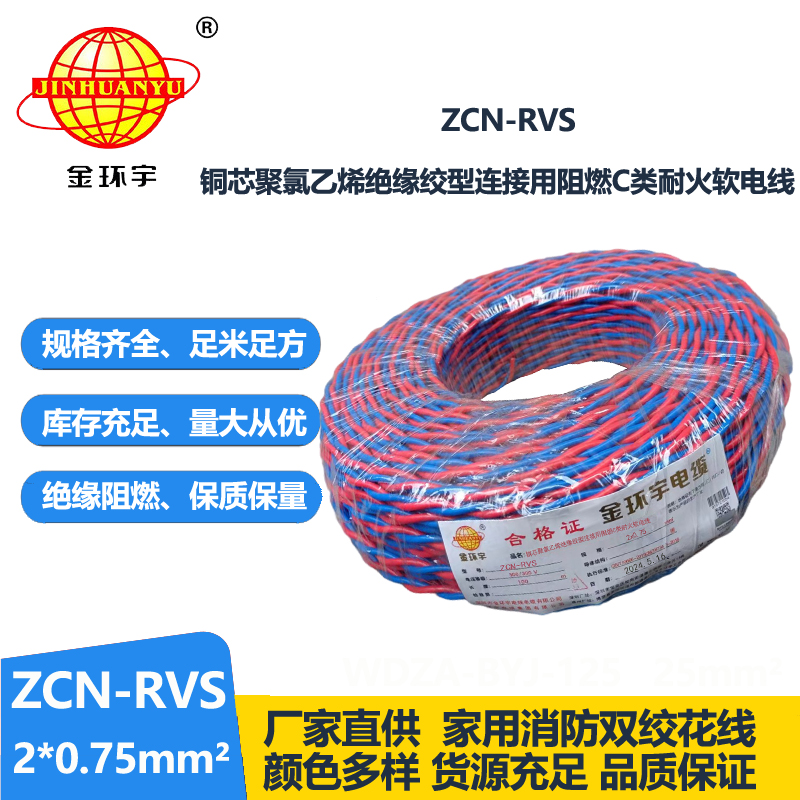 “ZCN-RVS”表示阻燃耐火型聚氯乙烯絕緣雙絞線。RVS--300/300V-聚氯乙烯絕緣絞型連接用軟電線。ZC是指阻燃C級,N-耐火型的。