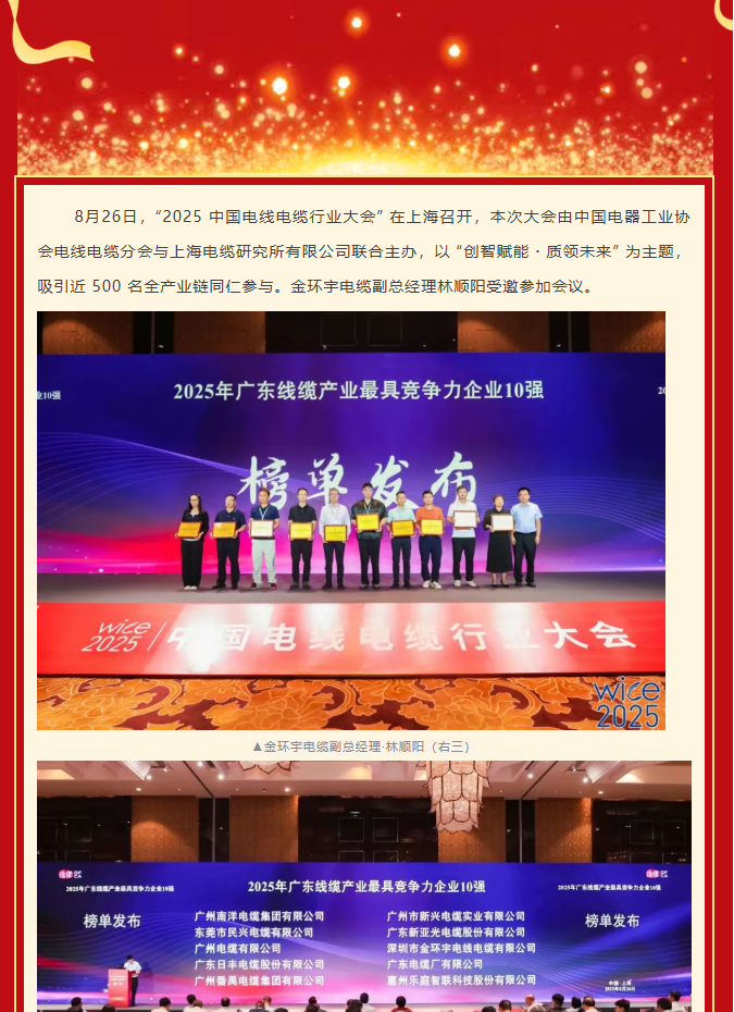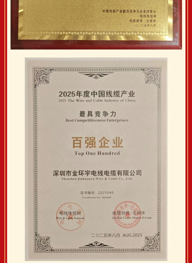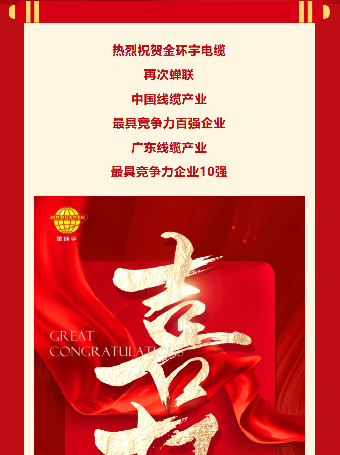 喜報(bào)丨熱烈祝賀金環(huán)宇電纜再次蟬聯(lián)中國(guó)線纜產(chǎn)業(yè)最具競(jìng)爭(zhēng)力企業(yè)百?gòu)?qiáng)和廣東線纜產(chǎn)業(yè)最具競(jìng)爭(zhēng)力企業(yè)10強(qiáng)榮譽(yù)!