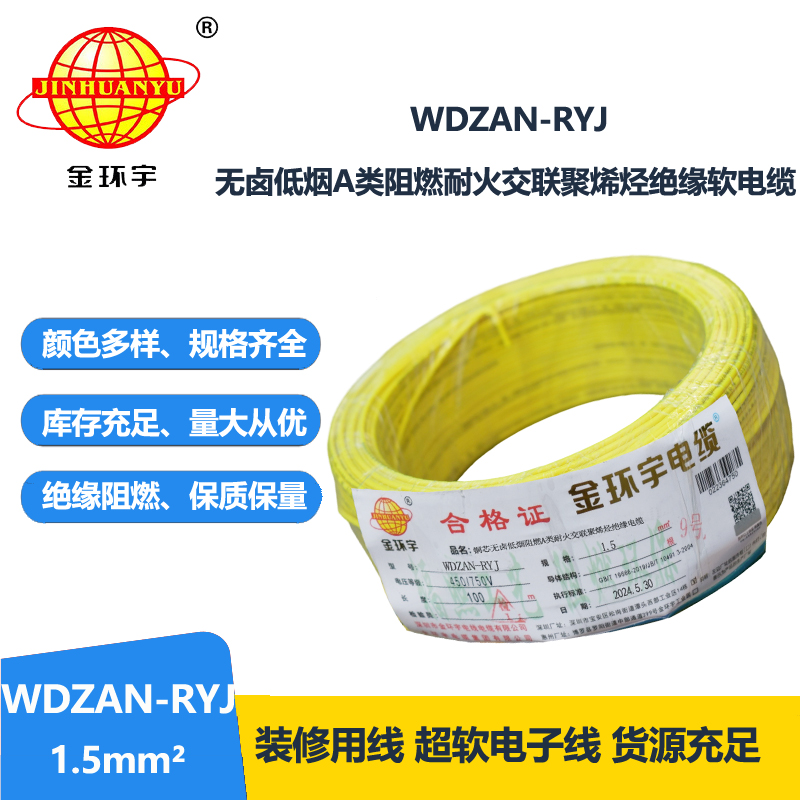 WDZAN-RYJ電纜:全稱A級阻燃耐火低煙無鹵交聯(lián)聚烯烴絕緣布電線,執(zhí)行標準GB/T19666-2005。